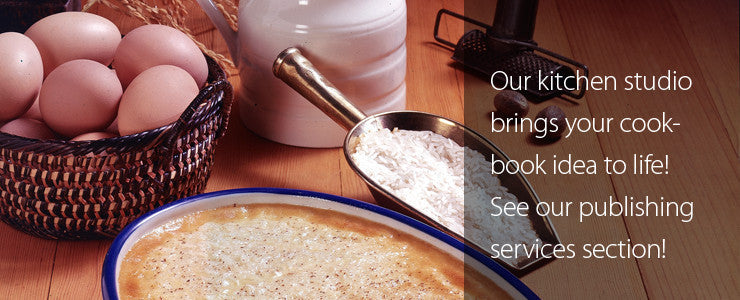 Our complete package includes design recipe preparation, cooking, photography, and printing of cookbooks, menus, or flyers. Printing is short run with quantities up to 500 available.